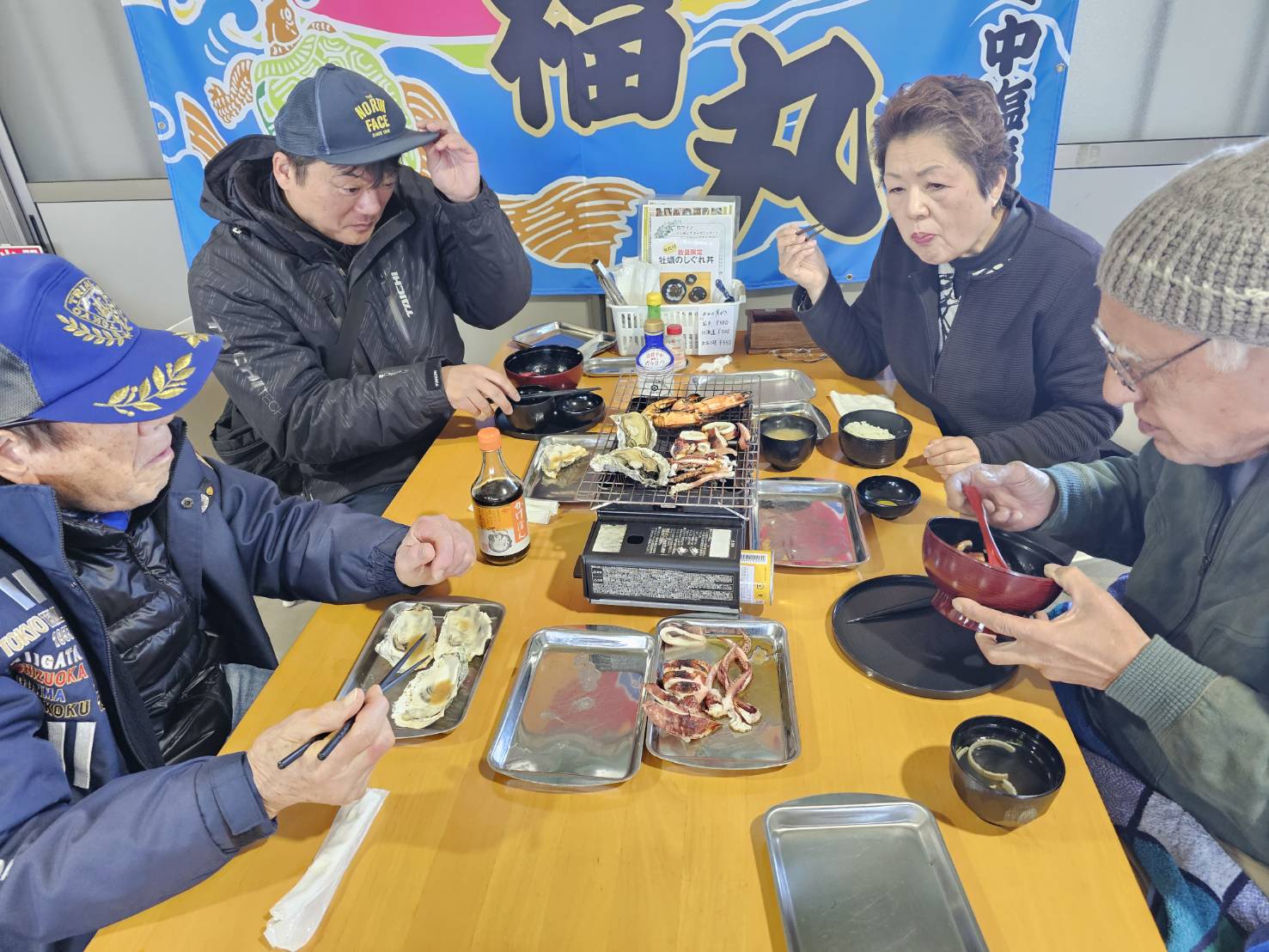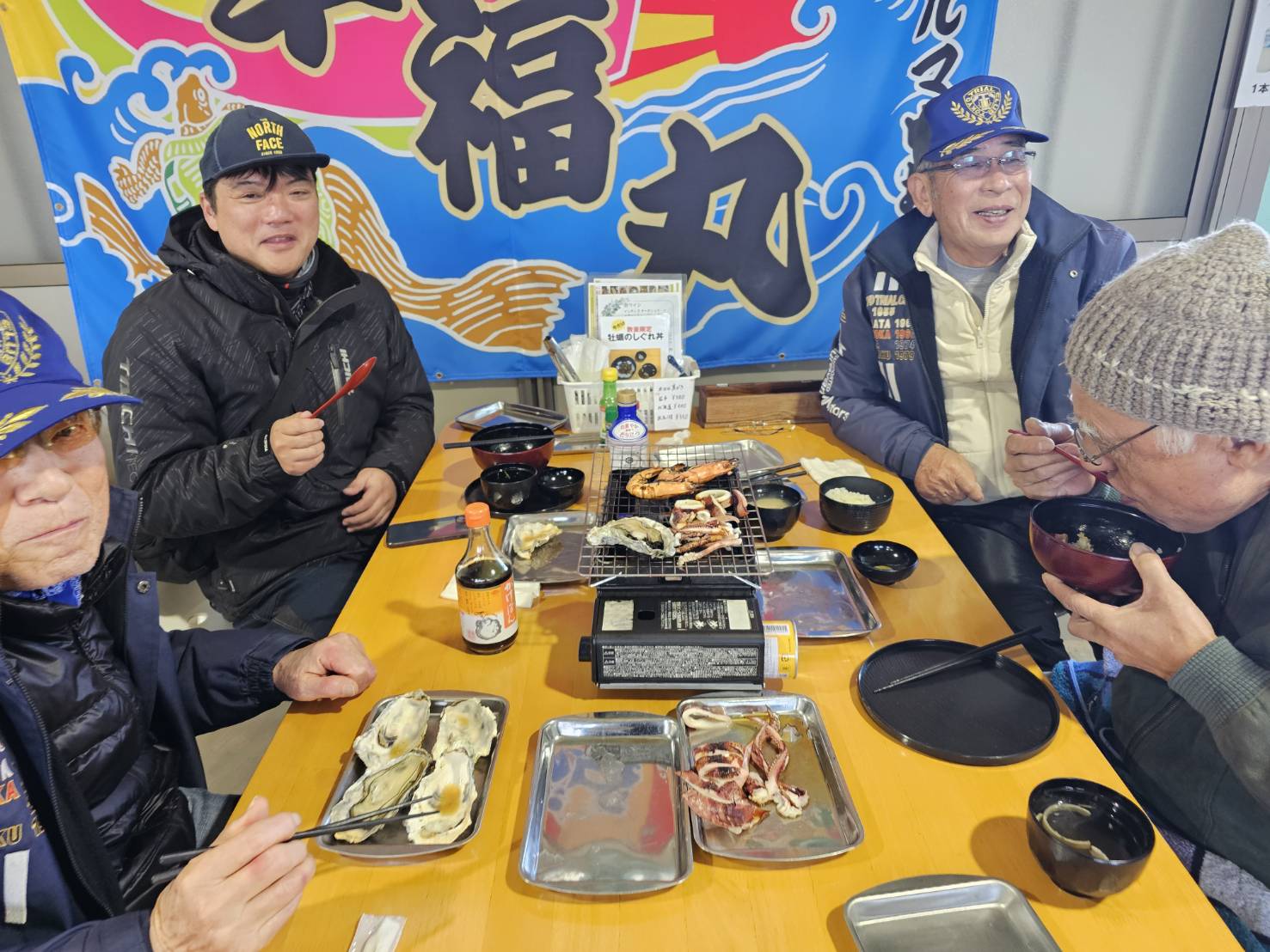 焼けたかな、一年ぶりの牡蠣小屋