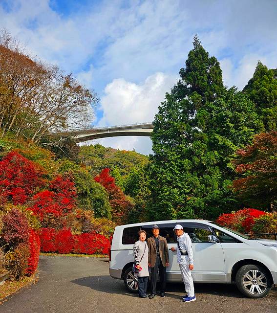 角度変えてハイポーズ紅葉、橋、三人さん
